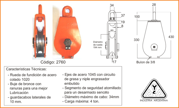 PASTECA ANGOSTA PARA 4 TONELADAS FIJA