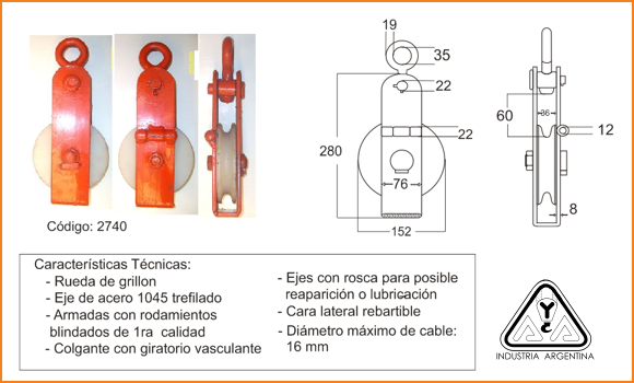 PASTECA PARA CABLE DE ZONDA